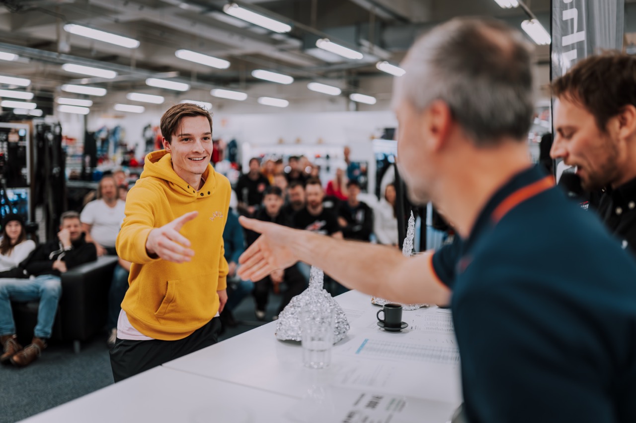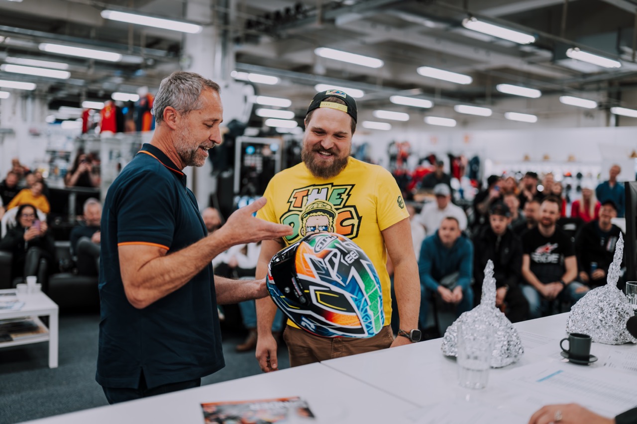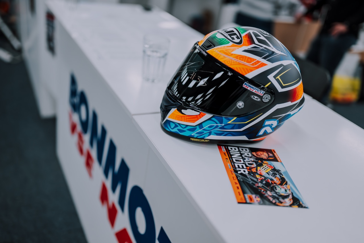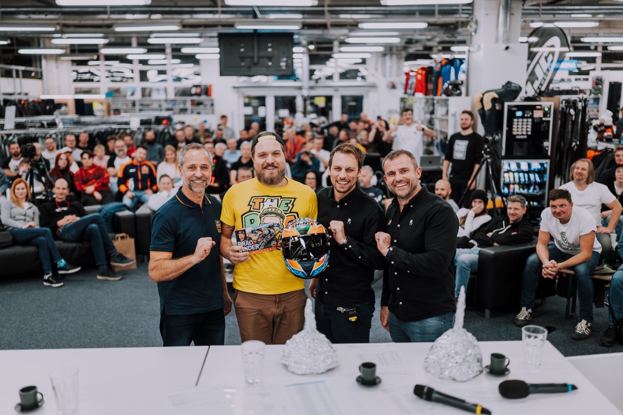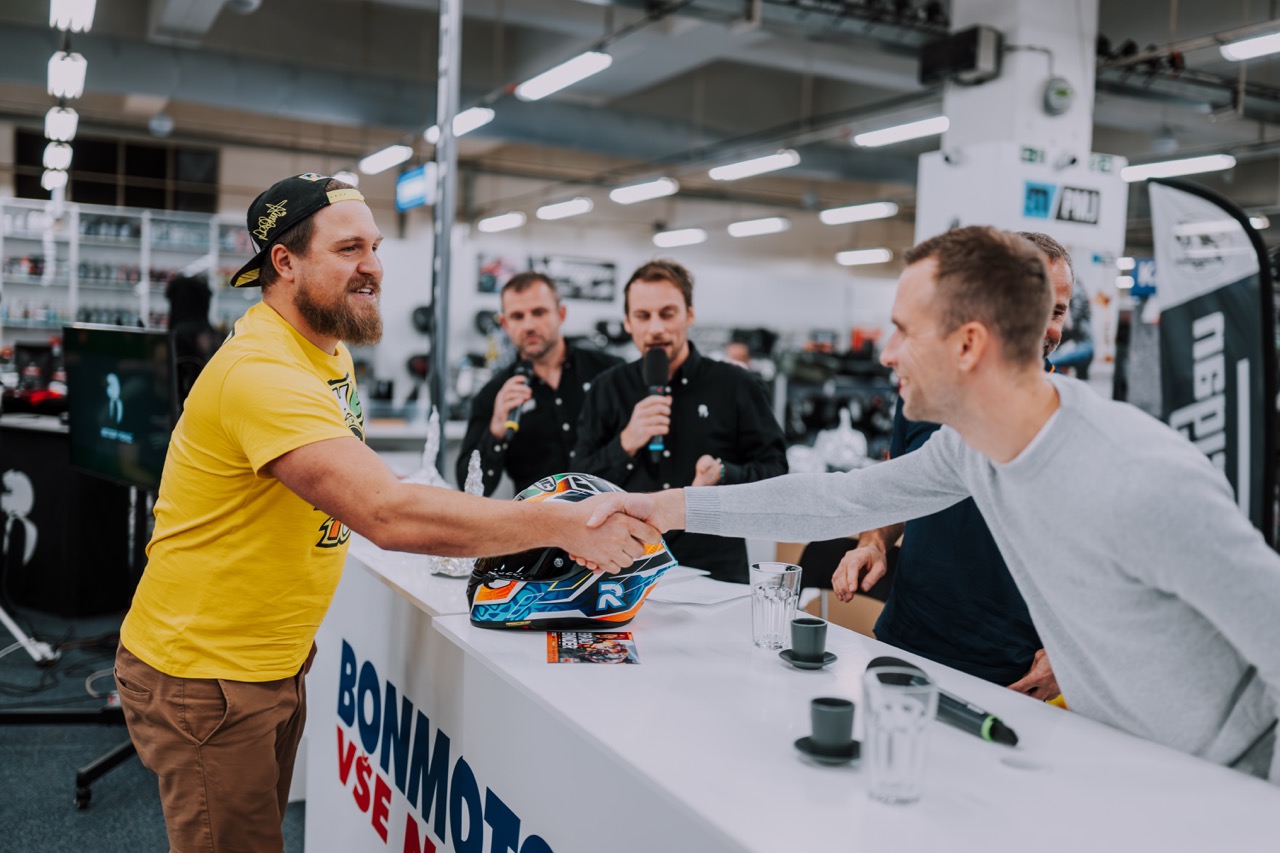 Na závěr jsme vyhlásili vítěze naší celoroční tipovací soutěže s Bonmotem o přilbu HJC RPHA 1 Brada Bindera a to včetně podpisu a věnování přímo od Brada.