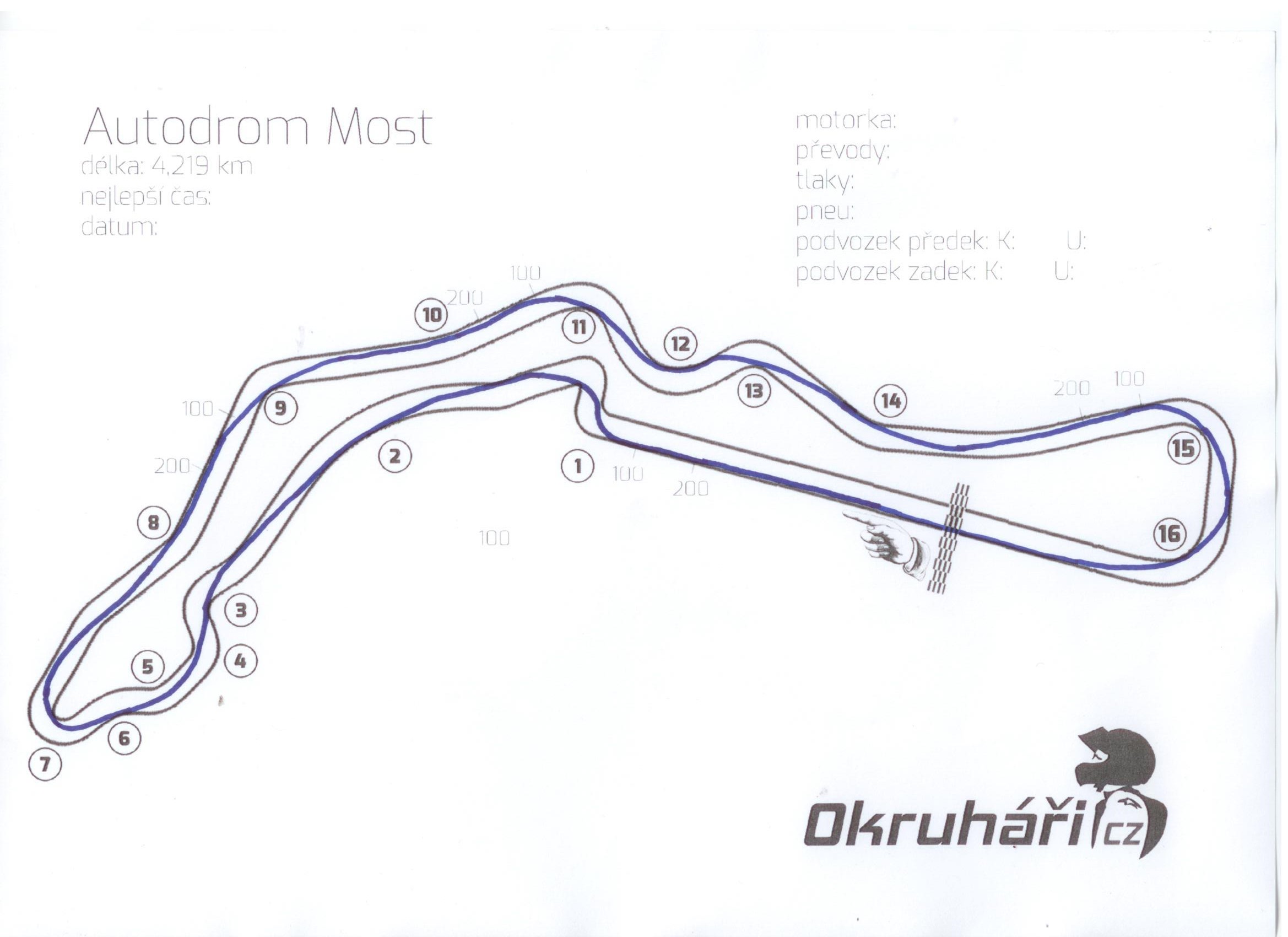 Náš druhý dospělý okruh. Autodrom Most je technická trať s několika výraznými úseky. Trať je o něco užší, než v Brně. Stejně tak záboxový prostor a boxy samotné jsou citelně menší. Druhé velké parkoviště pro závodní stroje se nachází ihned po přijezdu na okruh v prostoru posledních dvou zatáček. V Mostě si procvičíte opravdu intenzivní brzdy do retardéru po cílové rovince. Důležité jsou výjezdy z pomalých zatáček a některé úseky jsou trochu na srdce, jako je "ďolík" a zatáčka pod "boxy". Specifikum mostecké traťě je absence obslužné komunikace po vnější straně okruhu. V případě pádu je tak nutné často rozjížďku zastavit, aby bylo možné situaci vyřešit. Pozor na hlukové limity!Na co si dát pozor